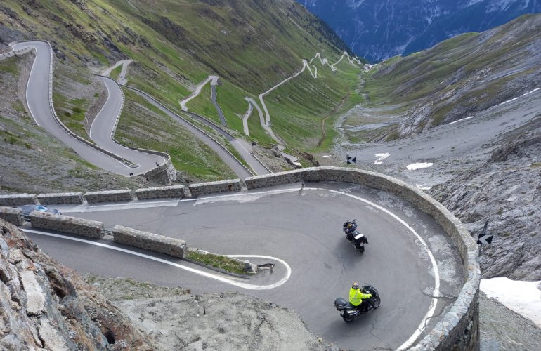 If you have been riding a lot of curvy roads and have a vast riding experience, you will be truly enjoying Alps as they provide you countless days of amazing curvy roads but as well hairpins across the highest mountain peaks. However, riding mountain curves is way different versus riding the curvy road not changing altitudes and that’s where the riding technique is different and requires different way of observing the road ahead (for example 180 turn may descend or ascend and you are not able to see across your shoulder the road you will take like it is the case on a ground zero). Stopping and starting on the hills is as well different (depending whether you stop ascending, descending or the hill climb is on your right or left side). For beginners that recently started riding and don’t have much of experience, we would recommend some of the less demanding tours we do. For the riders that have experience in riding certainly riding Alps motorcycle tours will be some of the best rides there is. Our experienced guides will not only provide you with a great fun but they will as well spend time in teaching you comfortably during the tour the riding techniques. Many of our clients that take our Alps motorcycle tours end up saying they realized after 10 day of 15 days tours (depending which one they have chosen) that have became better riders and managed to achieve much better riding technique even though many of them are riding for 20, 30 or some even 50 years (so far the oldest rider on our tours was at the age 82 touring our Alpine Grand Explorer. Remarkable gentlemen and amazing rider). So, be prepared you will certainly learn something new while enjoying simply the best Alps motorcycle tours there is.
